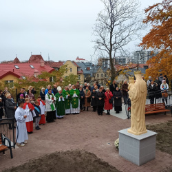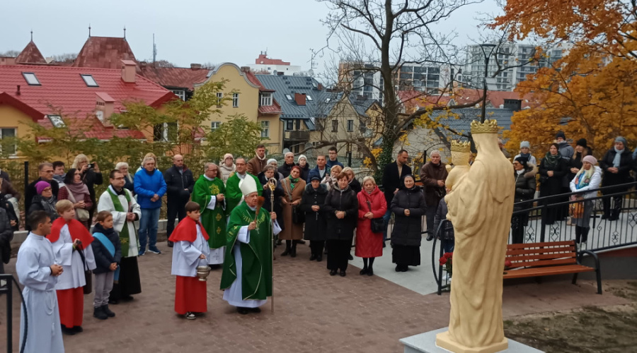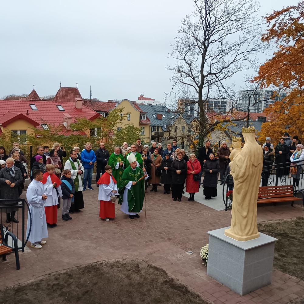 Podczas uroczystości Ksiądz Arcybiskup poświęcił nową figurę Matki Bożej Królowej Apostołów, której autorem jest artysta rzeźbiarz Jacek Jancelewicz – twórca, który wcześniej odtworzył ołtarz w prezbiterium naszego kościoła. Uroczystość stała się również okazją do poświęcenia nowych witraży, przedstawiających: