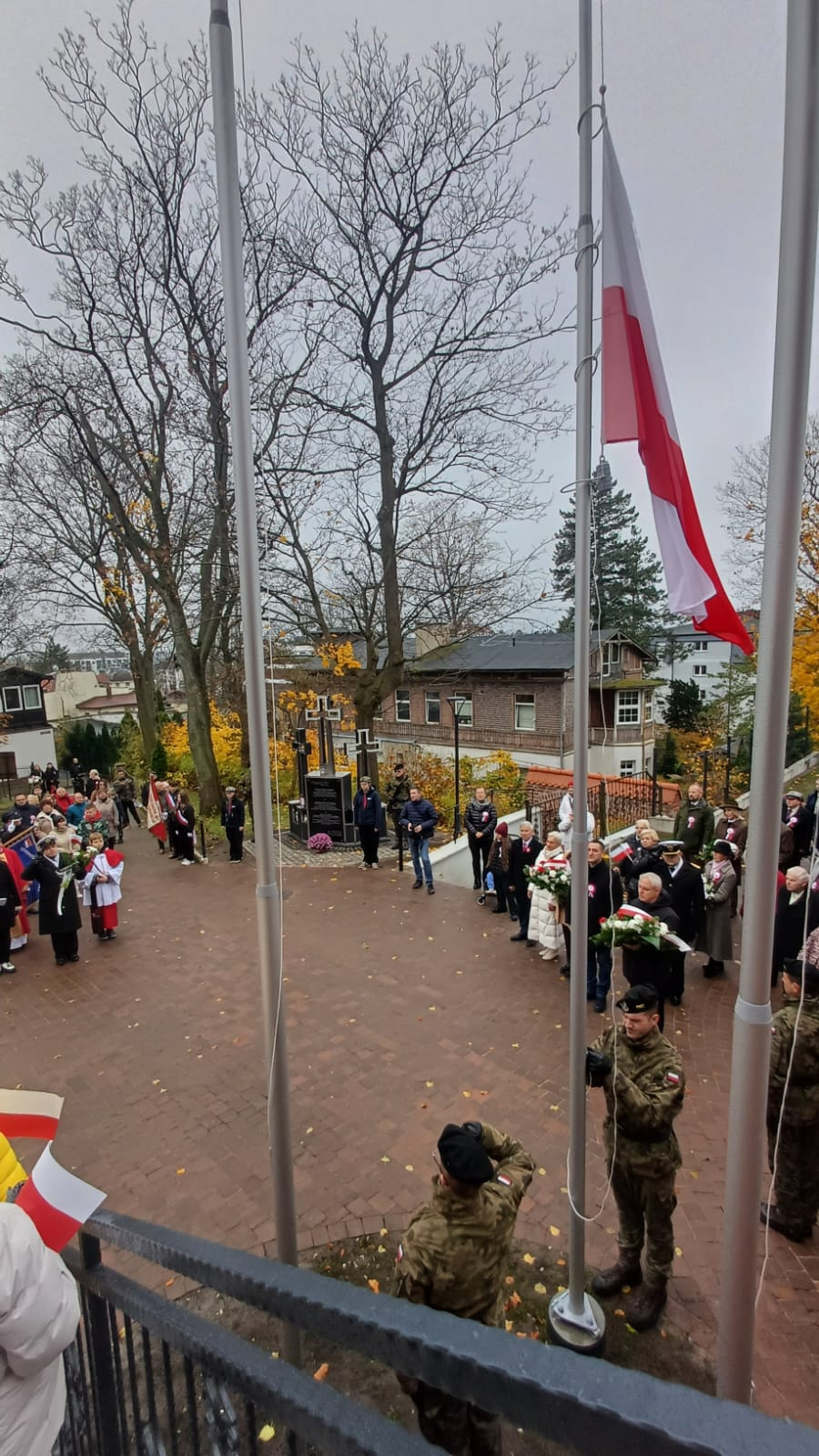 Po zakończeniu Eucharystii uczestnicy uroczystości przeszli w procesji pod pomnik poległych żołnierzy Armii Krajowej „Trzech Krzyży”. Tam, przy asyście wojskowej, wciągnięta została flaga Polski na maszt, a następnie wspólnie odśpiewano hymn narodowy.