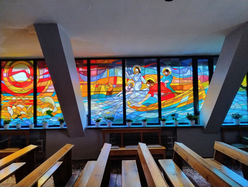 Bogata kolorystyka przyciąga wzrok i nadaje wnętrzu kaplicy wyjątkowy klimat modlitwy i zadumy. Promienie słoneczne przenikające przez kolorowe szkło ożywiają scenę, sprawiając, że wydaje się ona niemal żywa – jakby Duch Święty prowadził wiernych ku głębszemu przeżywaniu wiary.